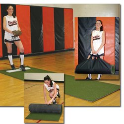 Artificial turf mat with non-skid, non-marking backing that is ideal for use on gym floors. Comes complete with carrying case and pitching rubber. Size: 3'W x 10'L,Wt 25 lbs. Read more...